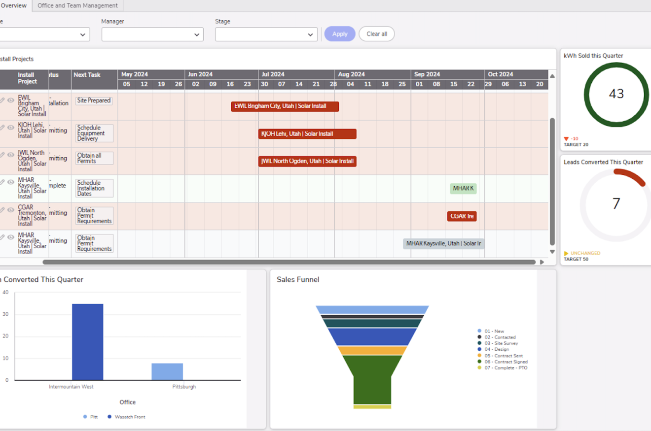 Track solar customers and projects from initial lead through installation and maintenance.
