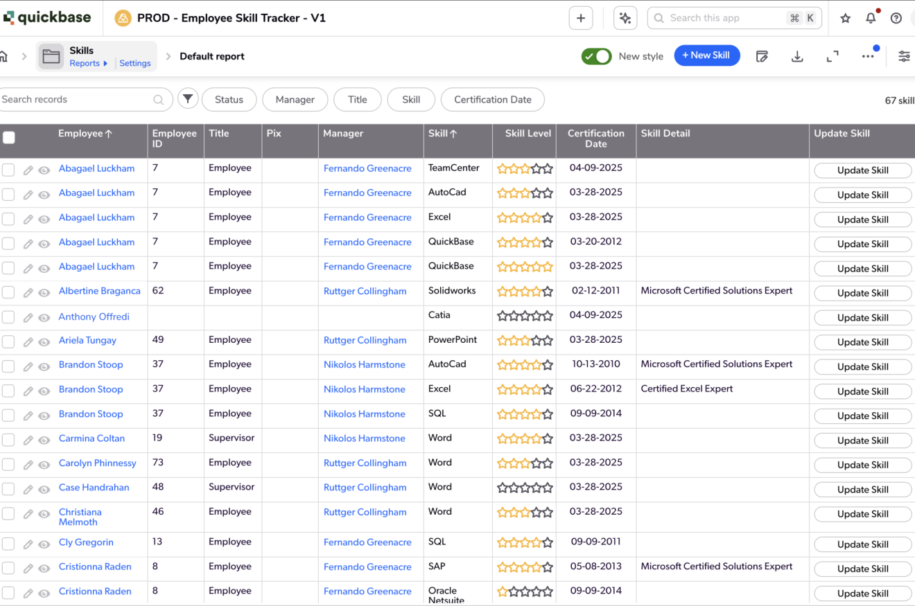 This application tracks employees and their skills providing separate dashboards and roles for administrators and employees to login and update their skills and certifications.