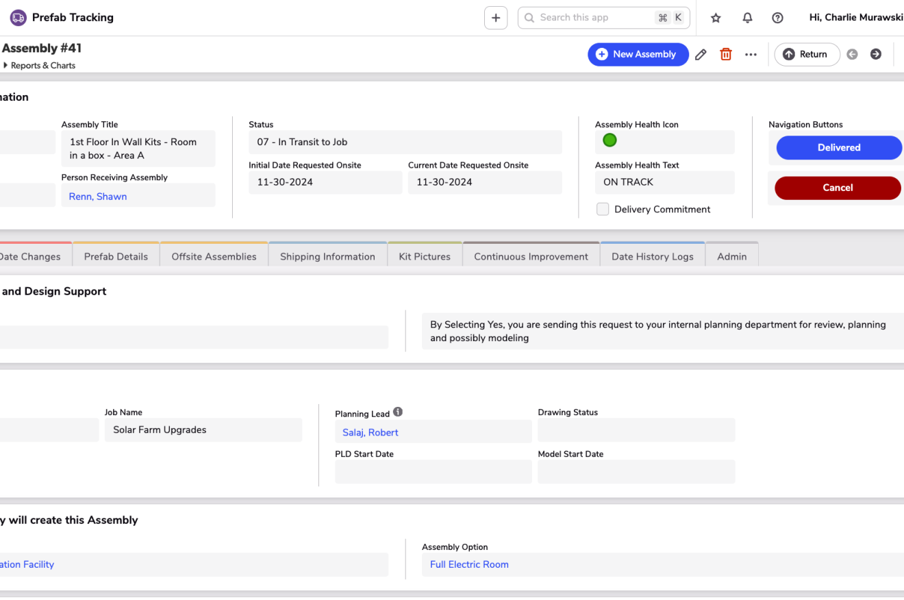 Quickbase’s Prefab Tracking app provides a comprehensive view that keeps projects moving smoothly and efficiently. Optimize resource allocation and minimize delays with a powerful tool built to support the prefab industry.