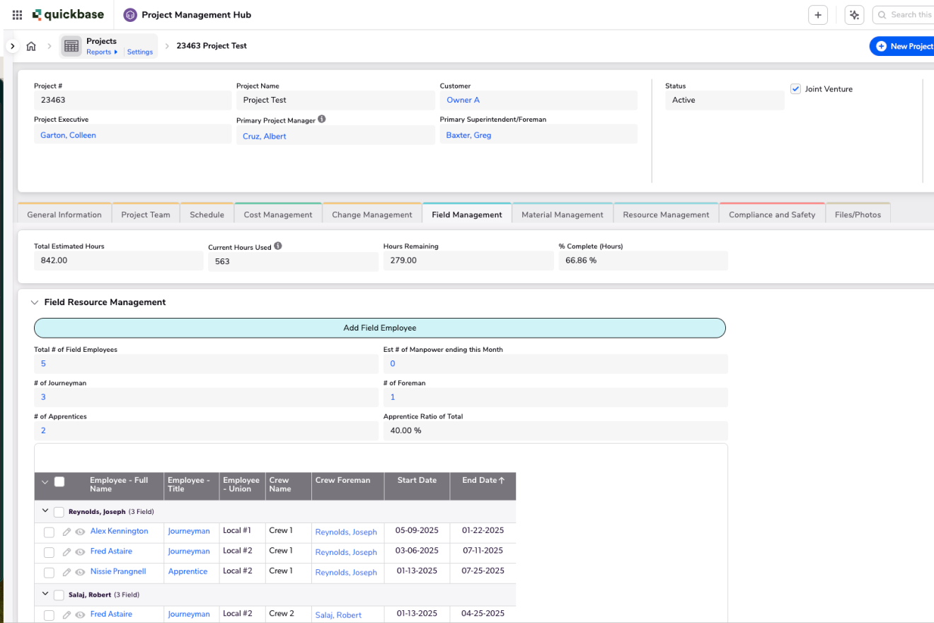 Quickbase’s Project Hub Pro App is the ultimate construction project visibility tool for general and specialty contractors, serving as the central hub for all your construction workflows. This foundational app allows you to build operations that reflect the way you work, and consolidates key project information, including financials, labor, materials, compliance, and more, into intuitive dashboards for executives, project leaders, and field teams. Stay ahead of risks, track progress in real time, and make informed decisions across all projects, all from one centralized project hub.