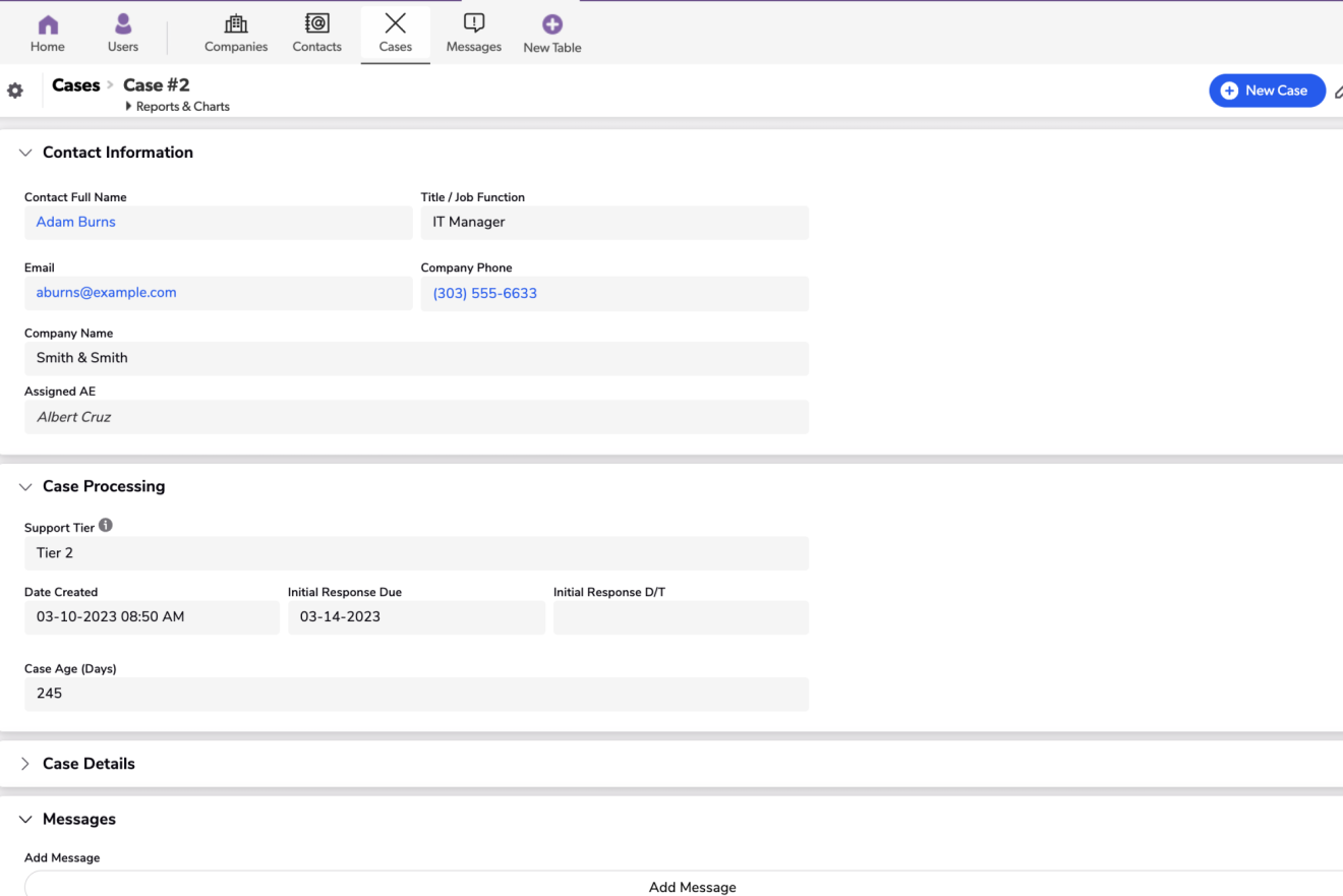 Starter app which supports the tracking of companies, contacts, and support cases; with basic workflow for case resolution.