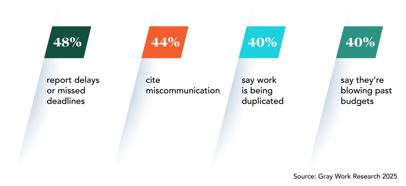 The impacts of Gray Work go beyond wasted hours. It’s leading to real project pain: